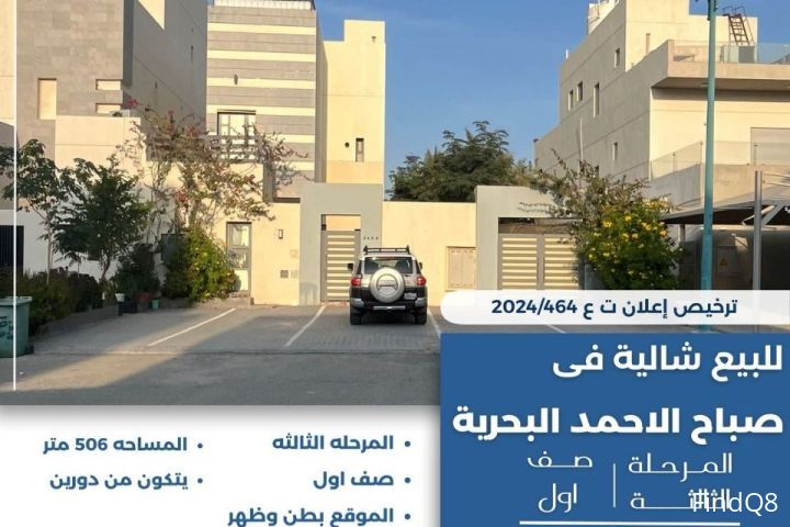 للبيع شالية في صباح الاحمد البحرية المرحلة الثالثة صف اول المساحة 506 متر يتكون من دورين الموقع بطن وظهر السعر 380 الف