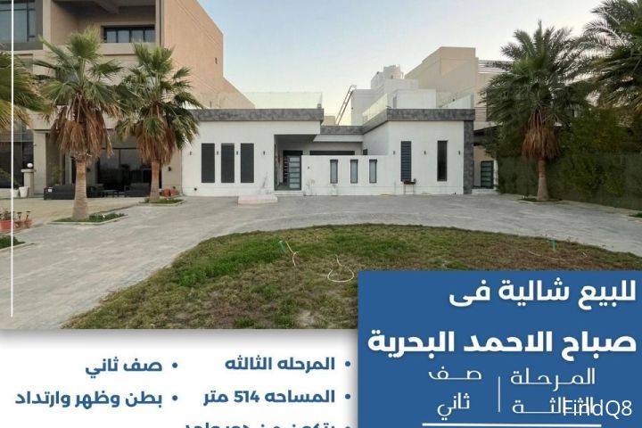 للبيع شالية في صباح الاحمد البحرية المرحلة الثالثة صف ثاني المساحة 514 متر بطن وظهر وارتداد يتكون من دور واحد السعر 250 الف