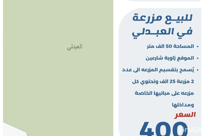 للبيع مزرعة في العبدلي المساحة 50 الف متر