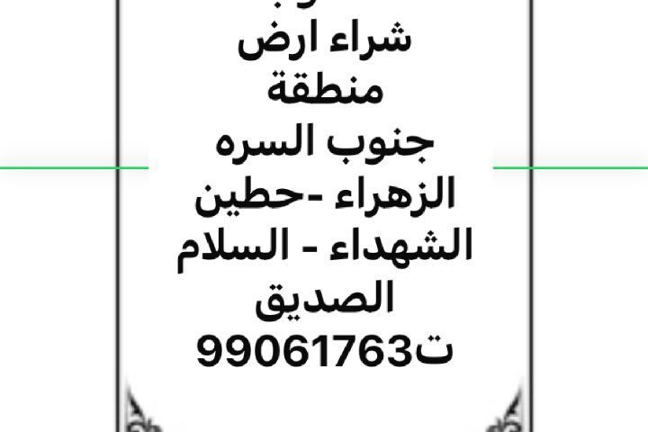 مطلوب شراء ارض منطقةجنوب السره الزهراء -حطين الشهداء - السلام الصديق ت99061763