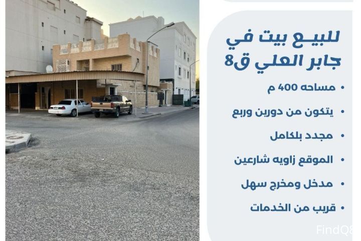 للبيع بيت في جابر العلي ق8 مساحة 400متر يتكون من دورين وربع مجدد بالكامل الموقع زاوية شارعين مدخل ومخرج سهل قرب الخدمات