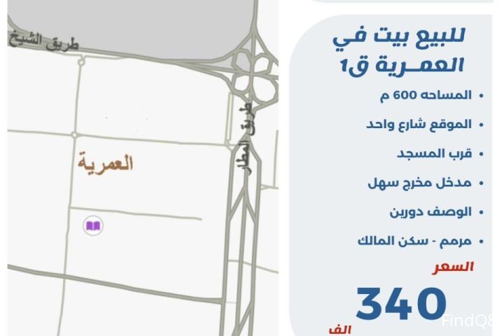 للبيع بيت في العمرية قطعة 1 المساحة 600 متر الموقع شارع واحد قرب المسجد مدخل ومخرج سهل الوصف دورين مرمم سكن المالك السعر 340 الف