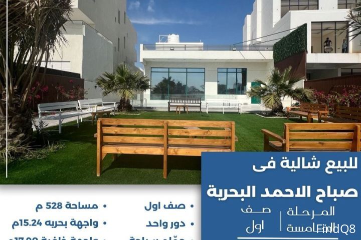 للبيع شالية في صباح الاحمد البحرية صف اول المرحلة الخامسة دور واحد مساحة 528 متر حمام سباحة تكييف وحدات واجهه خلفيه 17.90 م واجهه بحريه 15.24م السعر 350 الف