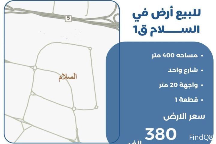 للبيع ارض في السلام مساحة 400 متر شارع واحد واجهه 20 متر بجوار الخدمات سعر الارض 380 الف