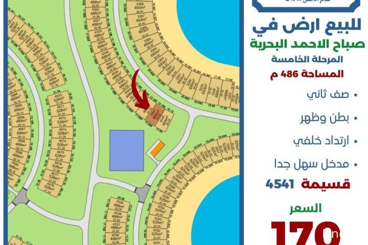 للبيع ارض في صباح الاحمد البحريه ، المرحله الخامسه ،