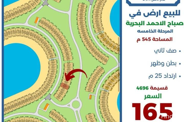 للبيع ارض في صباح الاحمد البحريه المرحله الخامسه