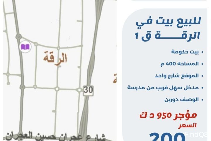 للبيع بيت في الرقه ق1 بيت حكومه المساحة 400 متر الموقع شارع واحد مدخل سهل قريب من مدرسه الوصف دورين مؤجر 950 دك السعر 200 الف