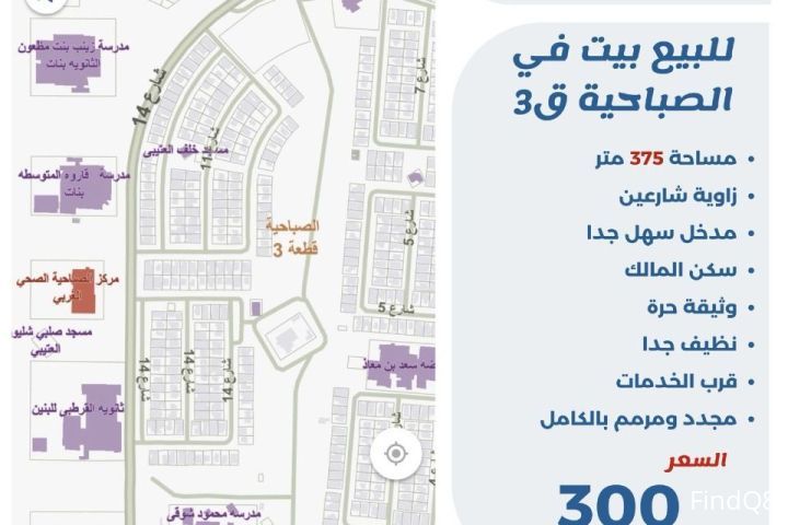 للبيع بيت في الصباحية قطعة 3 مساحة 375 متر زاوية شارعين مدخل سهل جدا سكن المالك وثيقة حره نظيف جدا قرب الخدمات مجدد ومرمم بالكامل السعر 300 الف